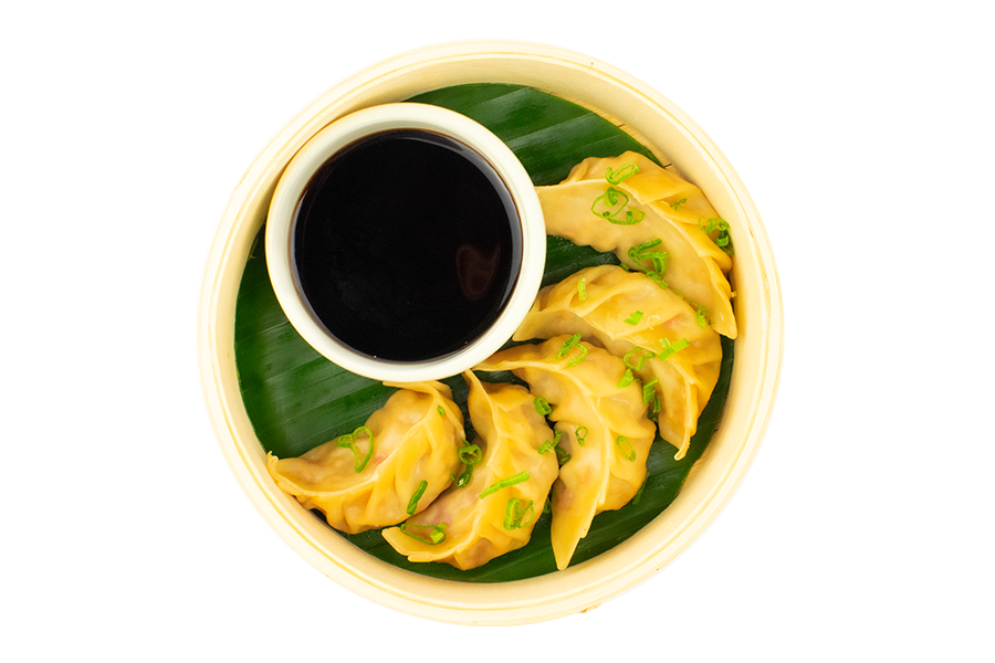 Raviol de carne de cerdo con vegetales acompañado de vinagreta de soya, pueden ser preparados fritos, al vapor o asados.
